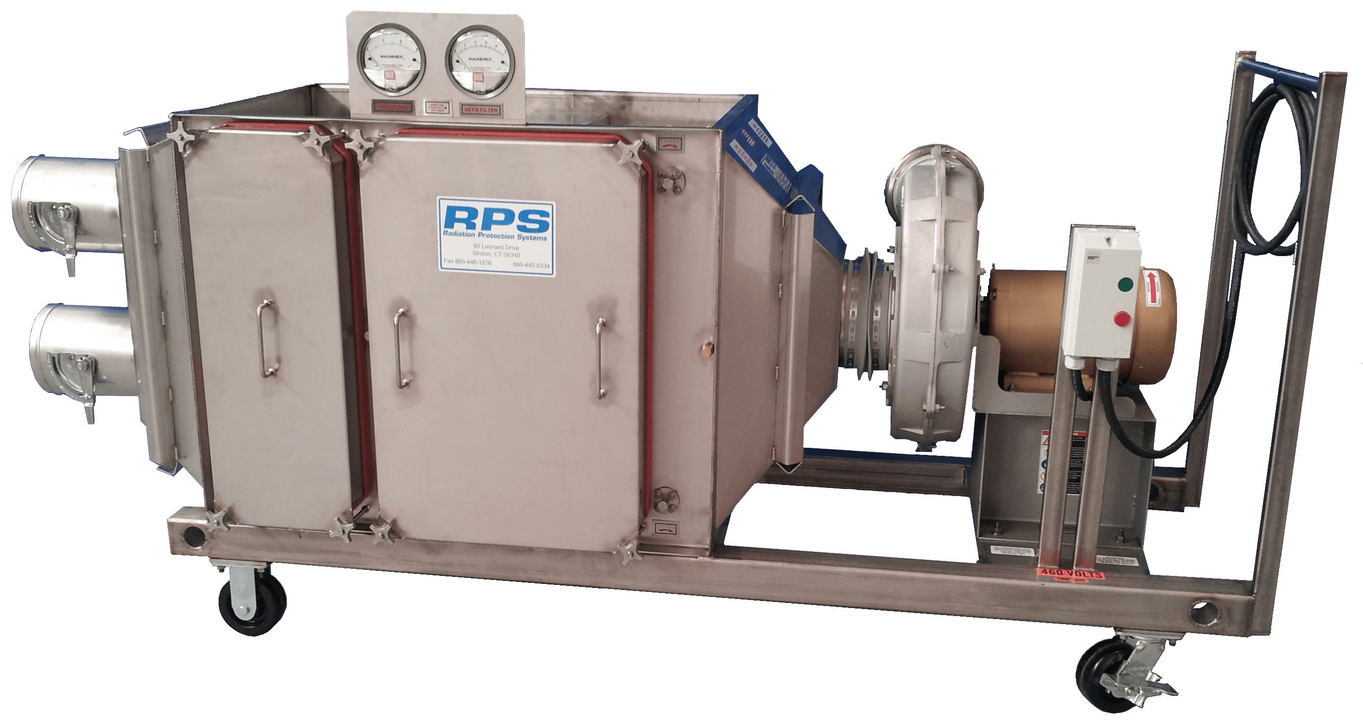 The PFB-1600 HEPA filtration unit delivers high power and incorporates a bag-in/bag-out (BIBO) style filter housing. For applications requiring maximum containment integrity during filter replacement, this filtration unit is the first choice. The PFB-1600 develops over 9″ of static pressure. This high performance unit overcomes flow losses incurred by extended lengths of flex duct and filter loading. It is ideal for remote placement and sustained operation.